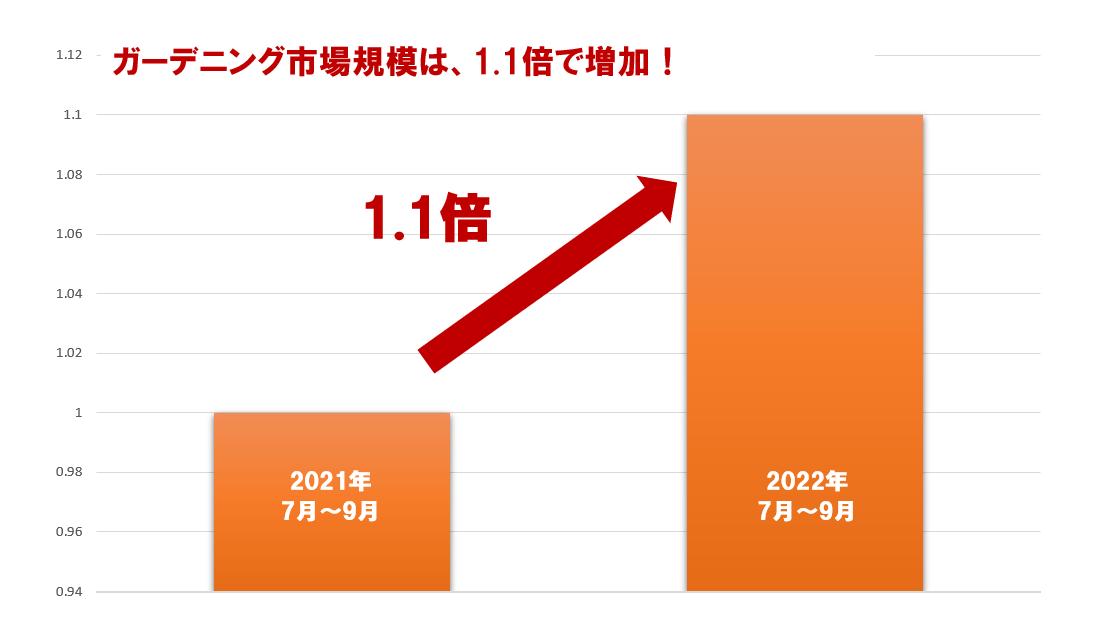ECモールのガーデニング市場規模は、1.1倍で増加!2022年7~9月のアマゾン、楽天、ヤフー状況をAI分析