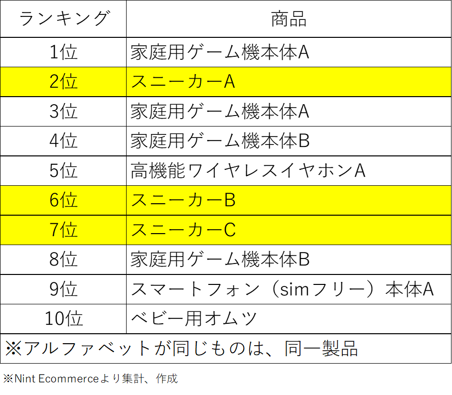 備考:ランキングは、ショップで販売される1SKU単位での集計です。(商品単品単位ではありません)同一商品でも、別ショップで売上上位となった場合、今回のランキングに登場します。※その際同一商品に関してはアルファベットが同じになります。