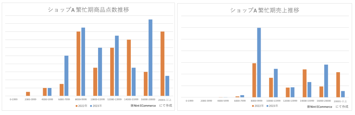 2022年では6,000円~7,999円と14,000円~15,999円が中心価格となっていますが、2023年は8,000円~9,999円と16,000円~20,000円が中心価格に変化しております。