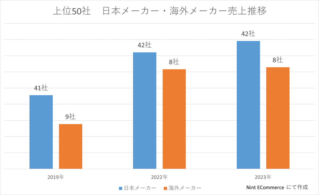 図14:上位50社 日本メーカー・海外メーカー社数・売上規模推移