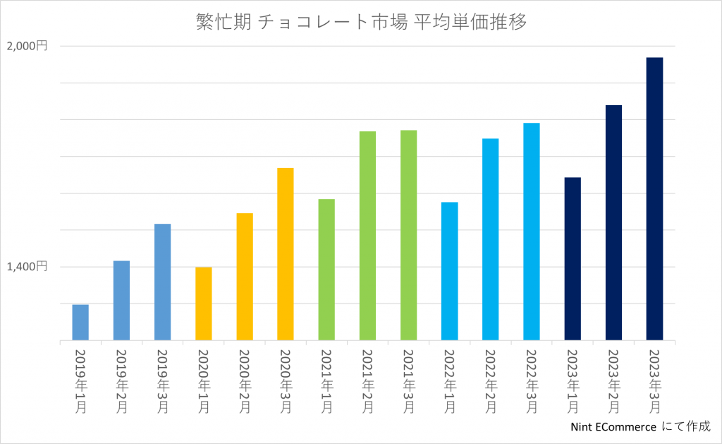 各モールそれぞれの特徴はありますが、2023年のチョコレート市場の繁忙期は例年と変わらず1月~3月と言えそうです。