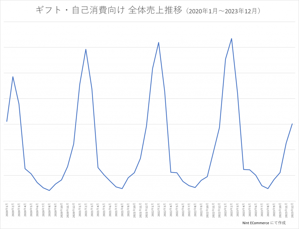 図4:ギフト・自己消費向け全体売上推移(2020年1月~2023年12月)
