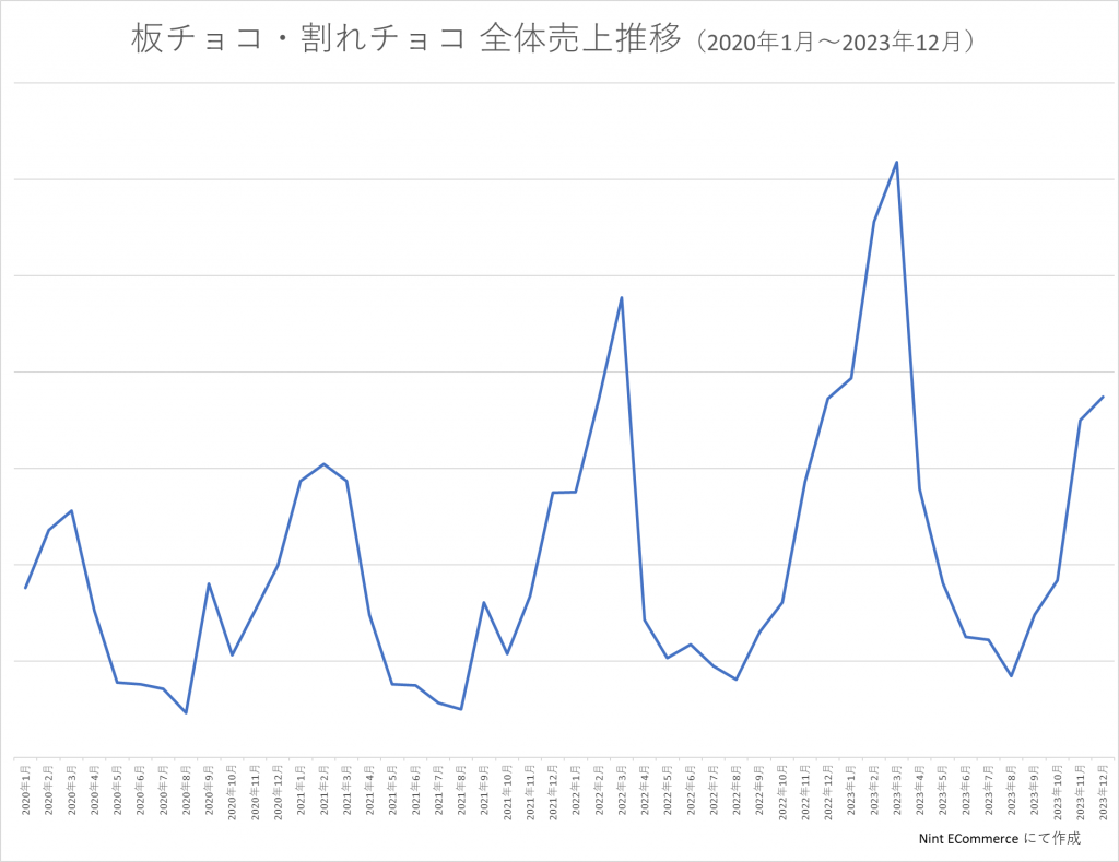 図3:板チョコ・割れチョコ全体売上推移(2020年1月~2023年12月)