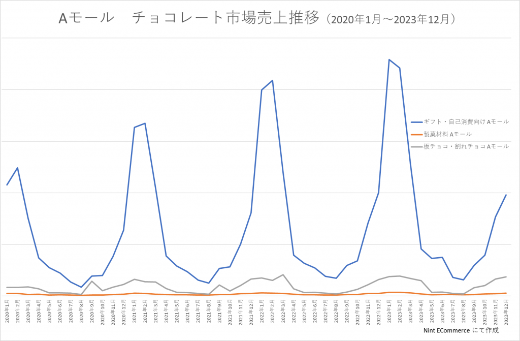 図5:Aモール チョコレート市場売上推移(2020年1月~2023年12月)