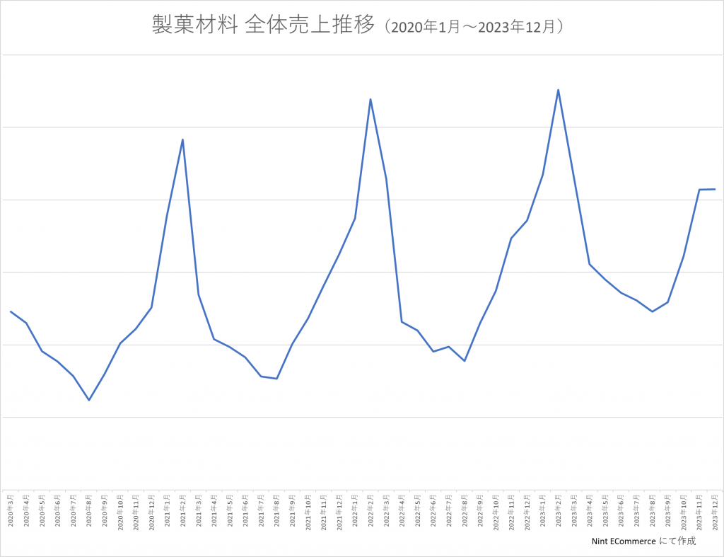 図2:製菓材料全体売上推移(2020年1月~2023年12月)