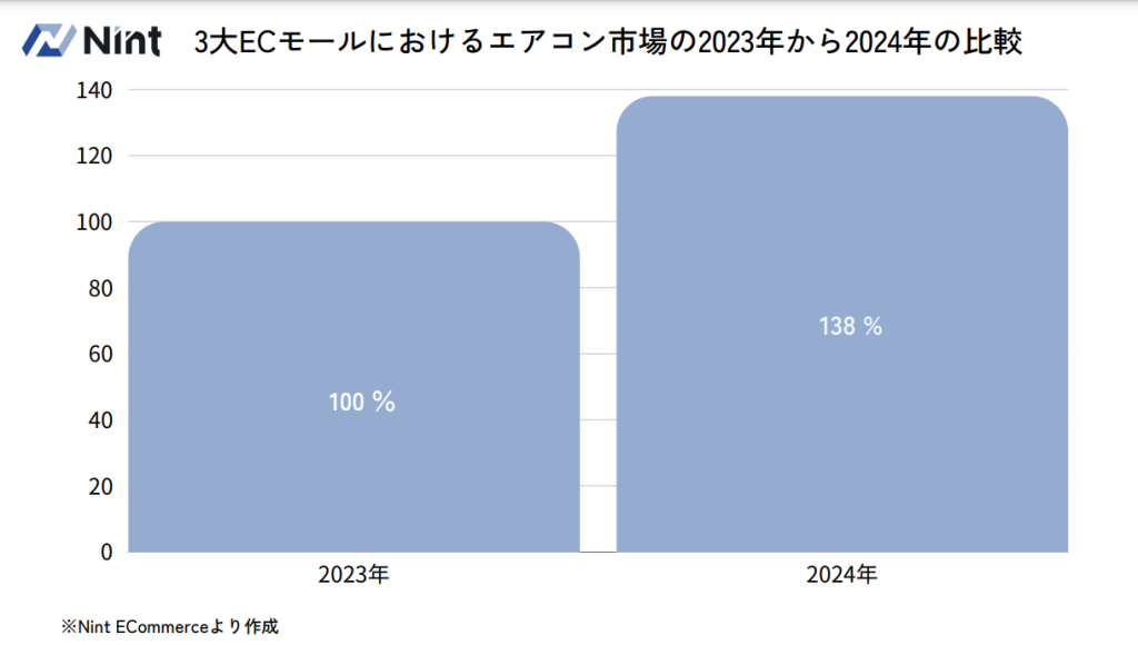 ECモールのエアコン市場規模は、1.38倍で急速に拡大!2024年4~6月の楽天市場、Amazon、Yahoo!ショッピングの市場を分析