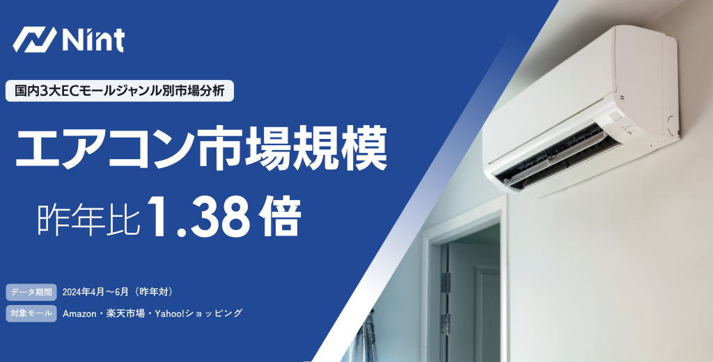 ECモールのエアコン市場規模は、1.38倍で急速に拡大!2024年4~6月の楽天市場、Amazon、Yahoo!ショッピングの市場を分析