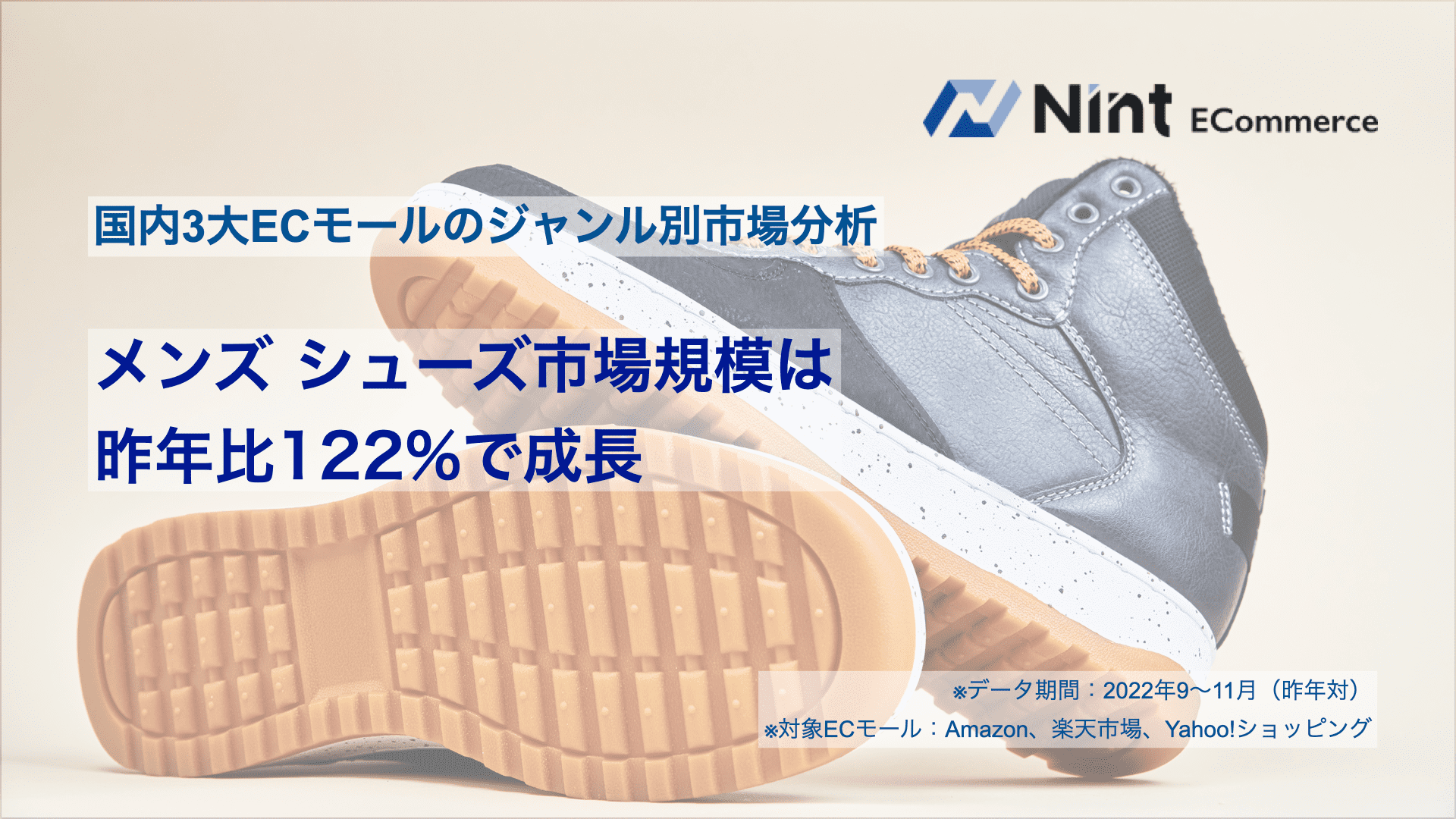 国内3大ECモールのメンズ シューズ市場規模は、昨年比122%で急速に拡大!