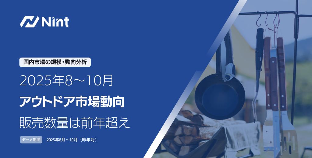 2025年8月から10月におけるアウトドア用品市場は、販売数量が増加傾向にある一方で、平均単価の下落により市場規模(売上金額)は微減となりました。大型の高額ギアから、手軽なファニチャーやウェア、小物類へと需要の中心がシフトしており、ライト層の流入や既存ユーザーの買い替え需要が市場を支えている様子がうかがえます。本レポートでは、大手ECサイトにおけるNint ECommerceのデータをもとに、最新の市場動向を解説します。