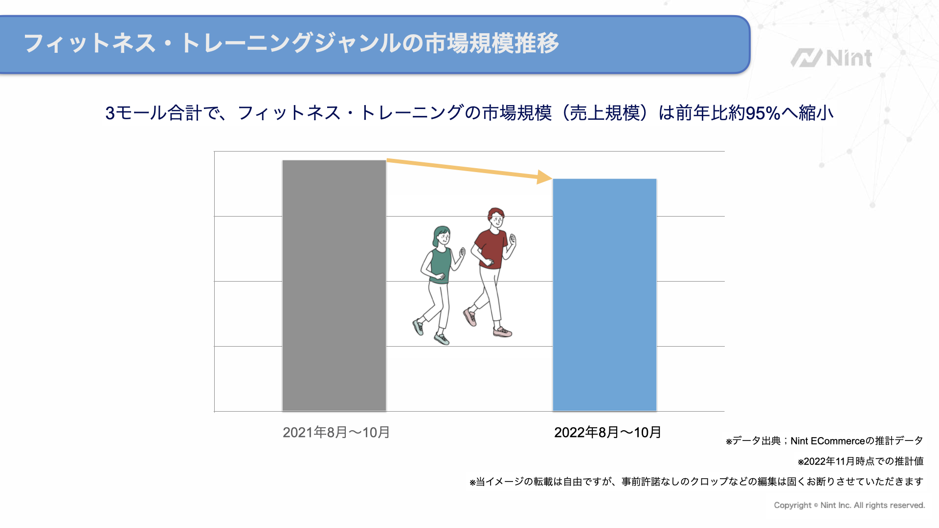 当該時期の市場規模は2021年8月~10月と比較して95%にとどまり、市場が縮小しています。