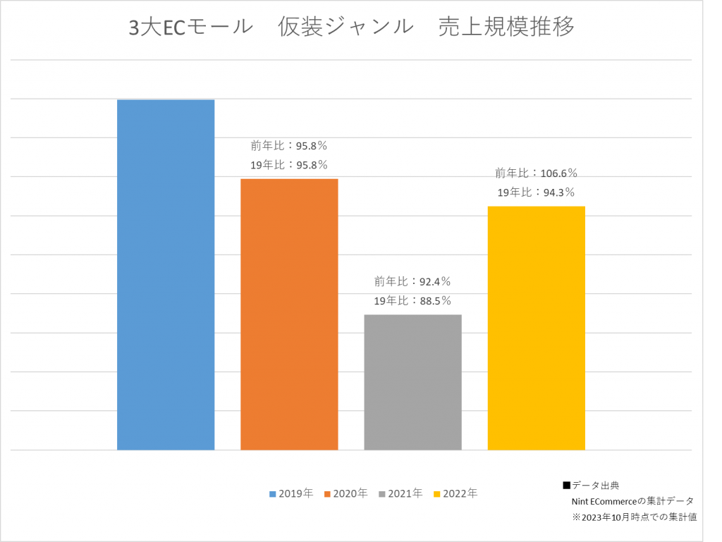 そうした背景がある中でも、前年比95.8%で推移した2020年、前年比92.4%で推移した2021年は仮装自体の機会減少・ニーズの減少が影響していることが考えられます。