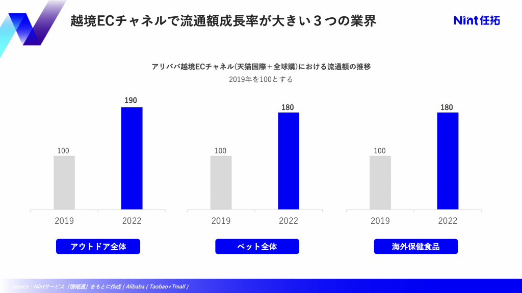 今回の感染爆発とは別に、インバウンドが停止していた3年間の中で新たに越境ECでトレンドとなったカテゴリもいくつか生まれた。アウトドア用品など、日本でも起きているトレンドと同じジャンルもあれば、異なるジャンルも存在する。