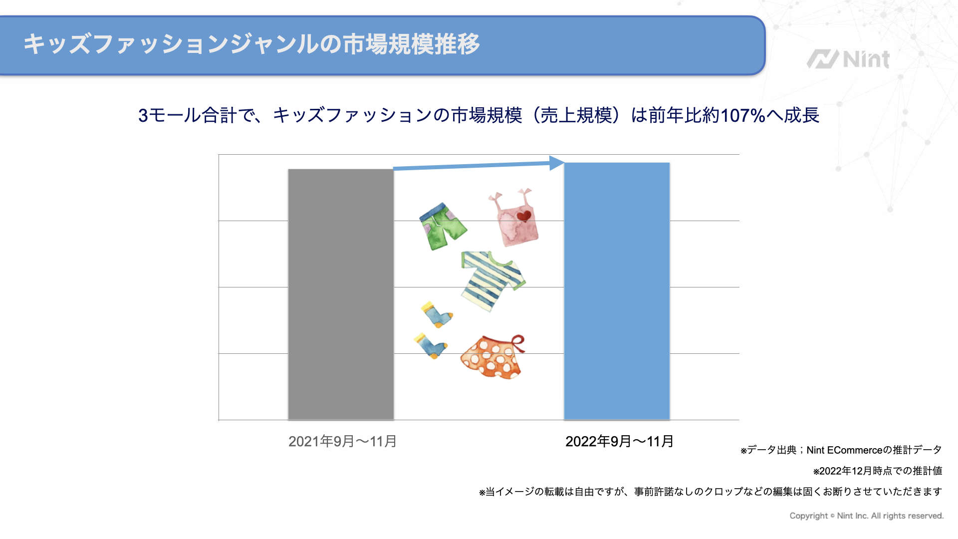 当該時期の市場規模は2021年9月~11月と比較して107%成長となり、市場が堅調に拡大となっています。