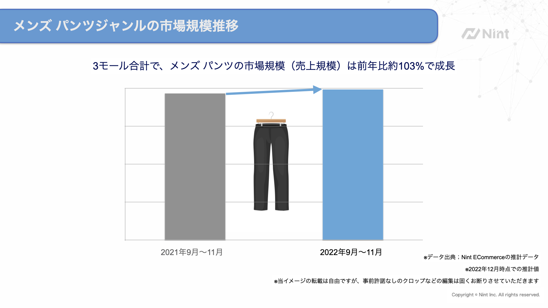 当該時期の市場規模は2021年9~11月と比較して103%で成長となり、市場が横這いとなっています。