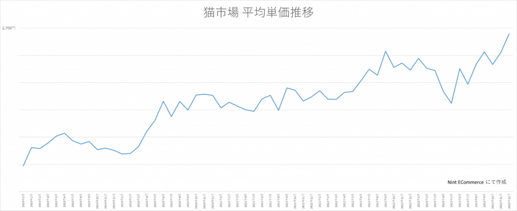 図4:3大ECモール猫市場平均単価推移