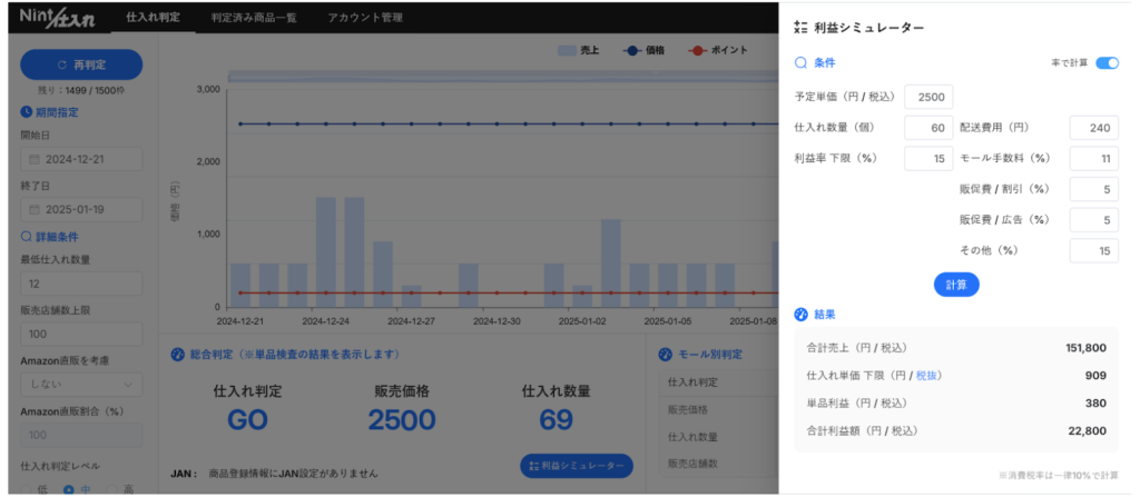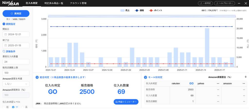こちらのNint仕入れを使えば、3モールでの適正仕入数や仕入価格を算出できます。