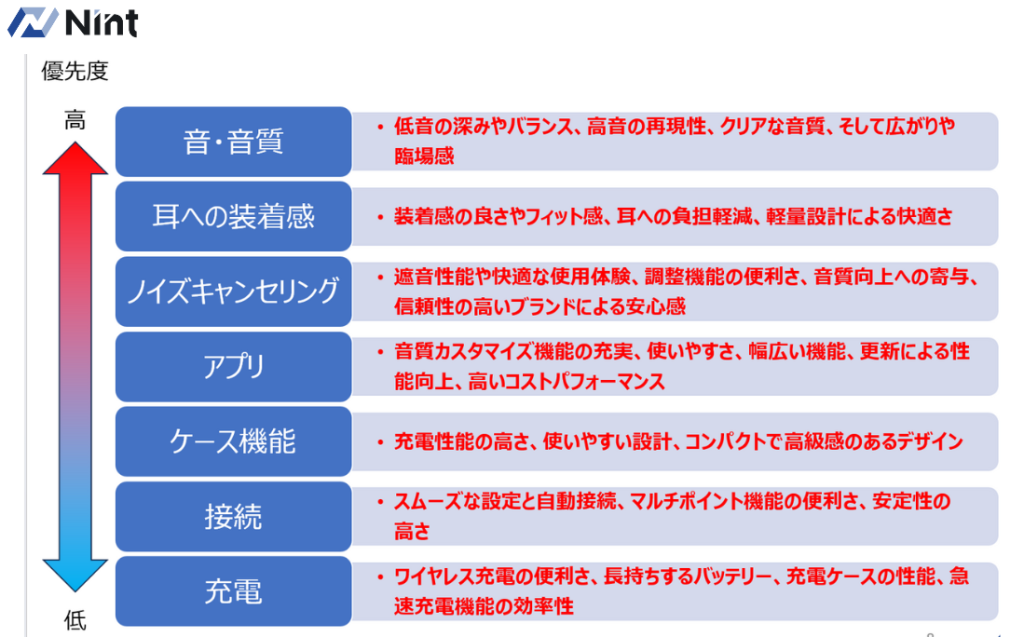 上記の結果を勘案し、高評価点は必ず競合商品と同じレベル以上に設計をしつつ、要改善点にどれだけ対応をしていくのかが開発時の重要なポイントになります。これにより、既存商品のシェアを丸のみして、ニッチ市場の独占を図っていく戦略を実行することが可能になります。