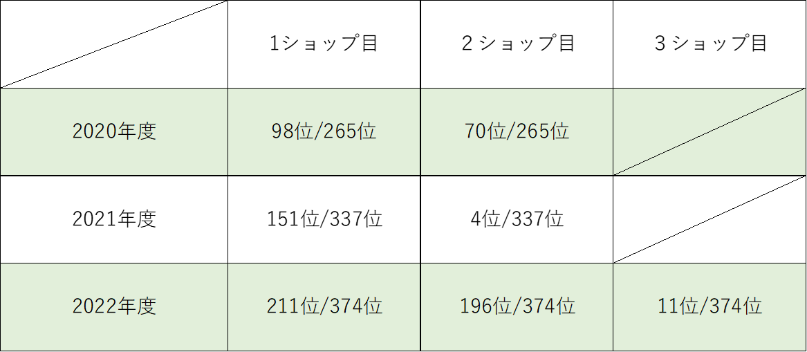 そこで今回は、2020年~2022年の6月から販売を始めたショップが6月~12月の期間で販売金額で何位になったかをチェックしました。