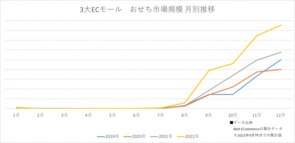 【出典:Nint BLOG「おせち商戦は既に開始!?年々早まる3大ECモールのおせち市場をチェック!」(2023年10月3日公開)】