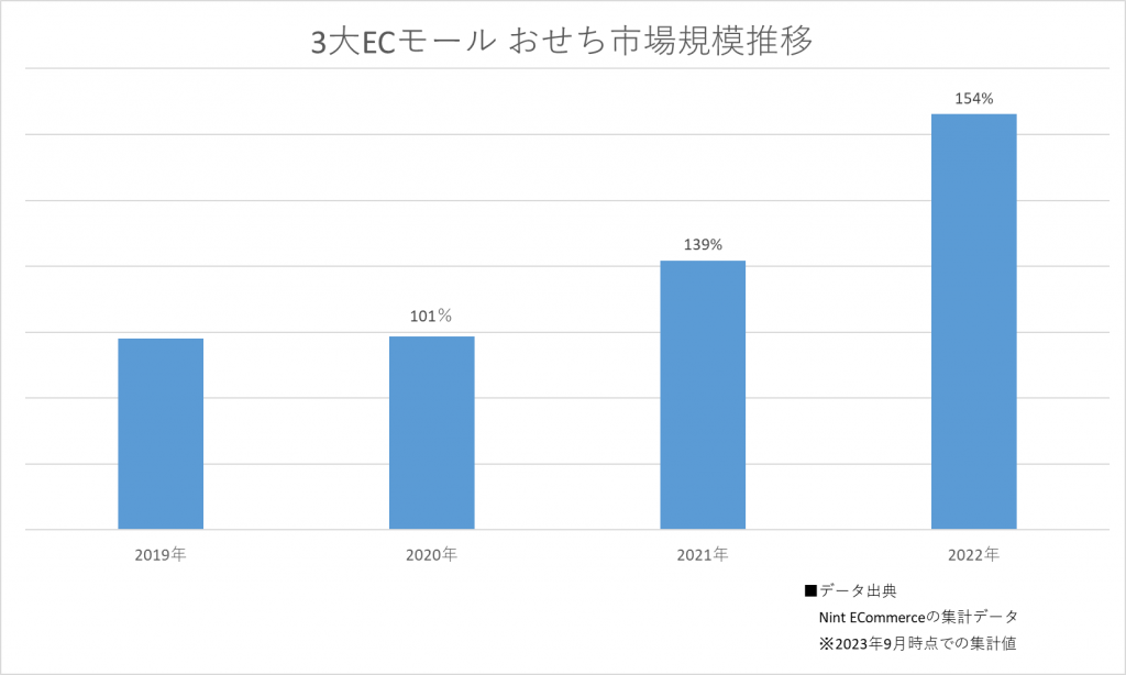1. 市場規模は2022年時点で前年比154%と急成長中!(※特にコロナ禍の行動制限緩和+EC化が影響の可能性)