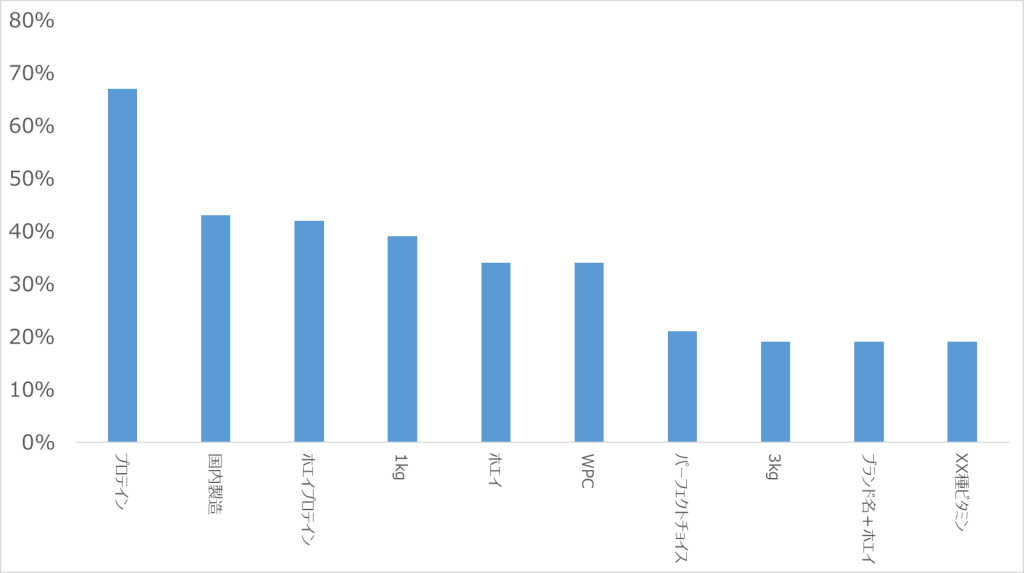 2024年ホエイプロテインTOP100商品に使用さているワード