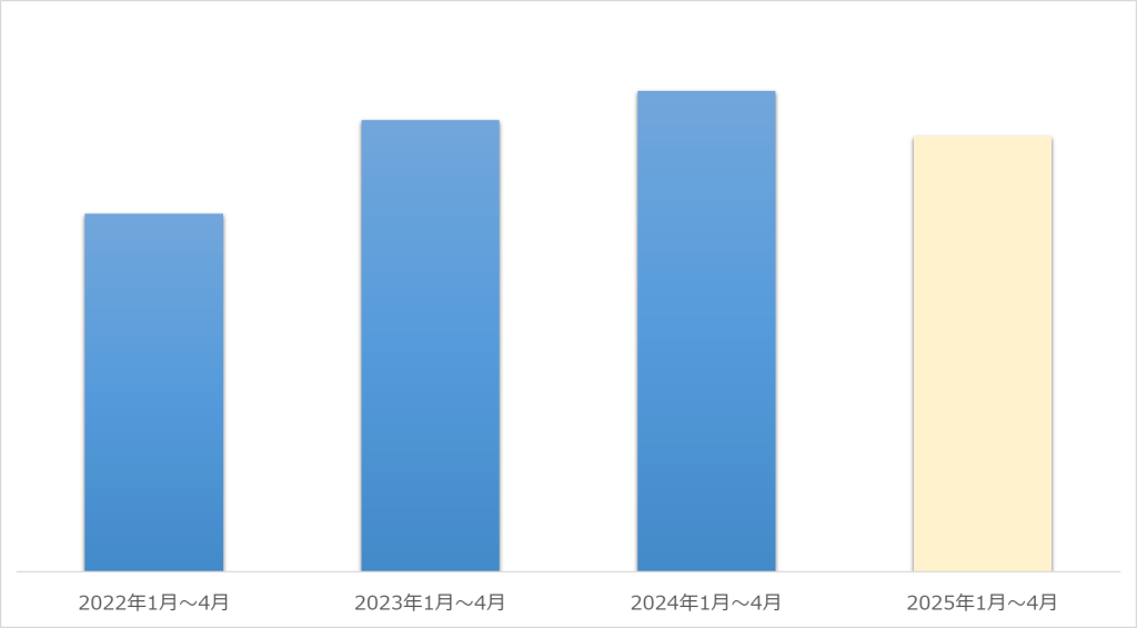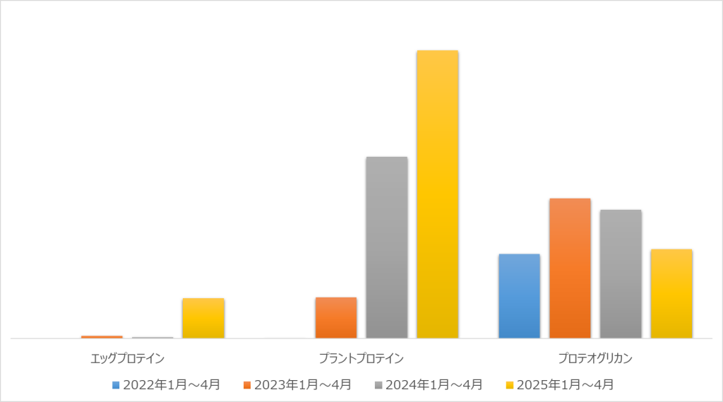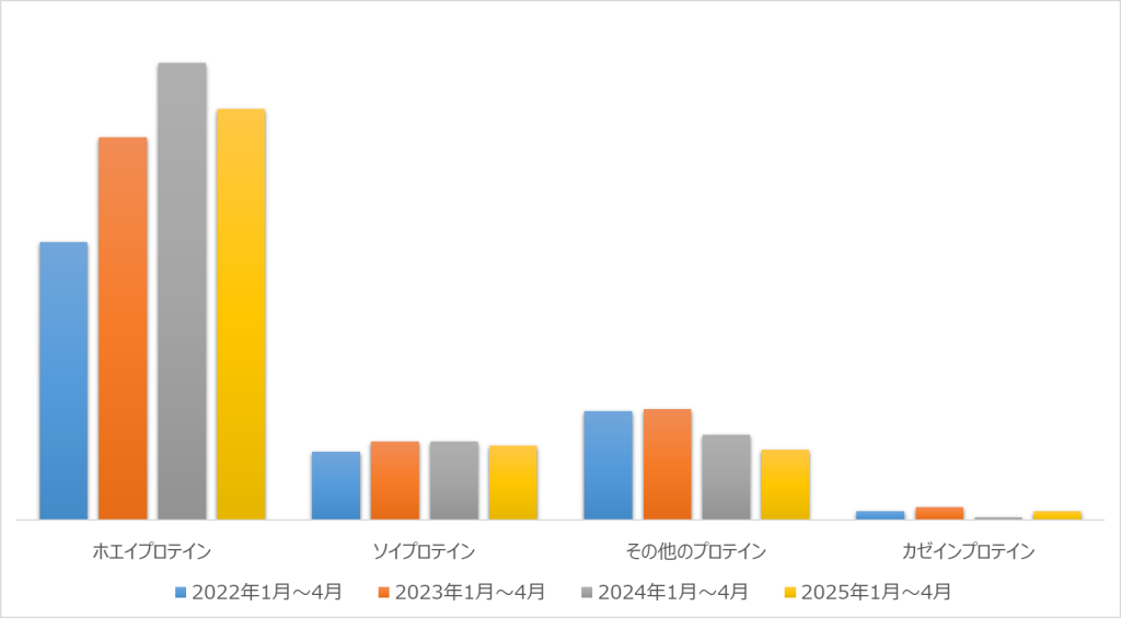2025年の1月~4月のプロテイン市場の売上を、2022年・2023年・2024年の同期間で比較してみましょう。