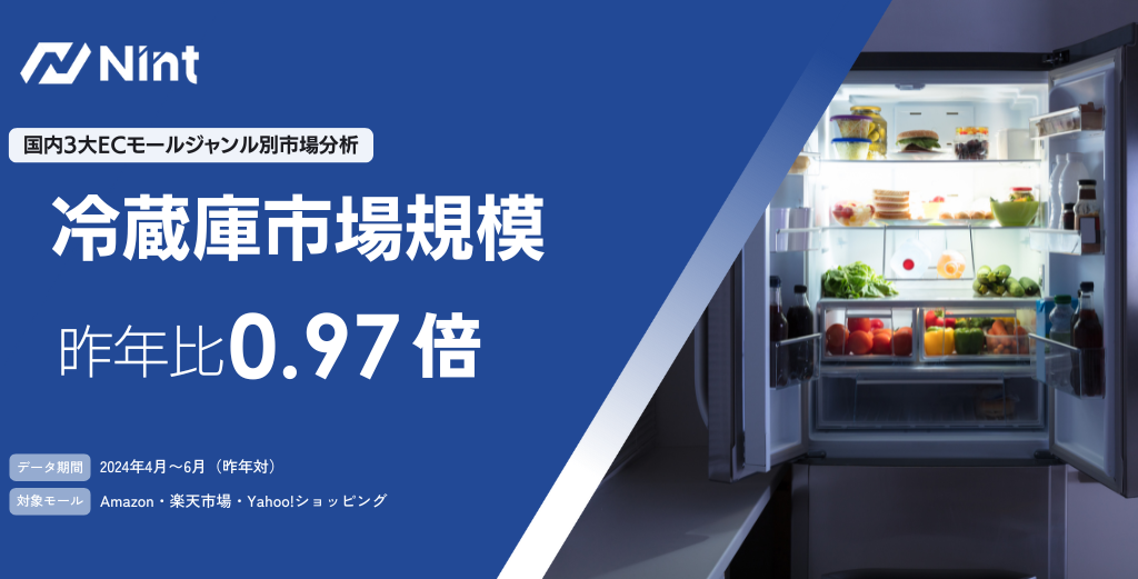 ECモールの冷蔵庫市場規模は、0.97倍で微減!2024年4~6月の楽天市場、Amazon、Yahoo!ショッピングの市場を分析