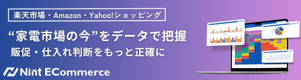 エアコン、テレビ、洗濯機、冷蔵庫などの市場データを分析し、自社のEC戦略に活かしたい方は、ぜひNint ECommerceをご活用ください。