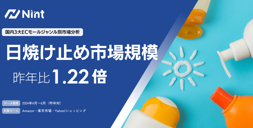 ECモールの日焼け止め市場規模は、前年比1.22倍で急速に拡大!2024年4~6月の楽天市場、Amazon、Yahoo!ショッピングの市場を分析