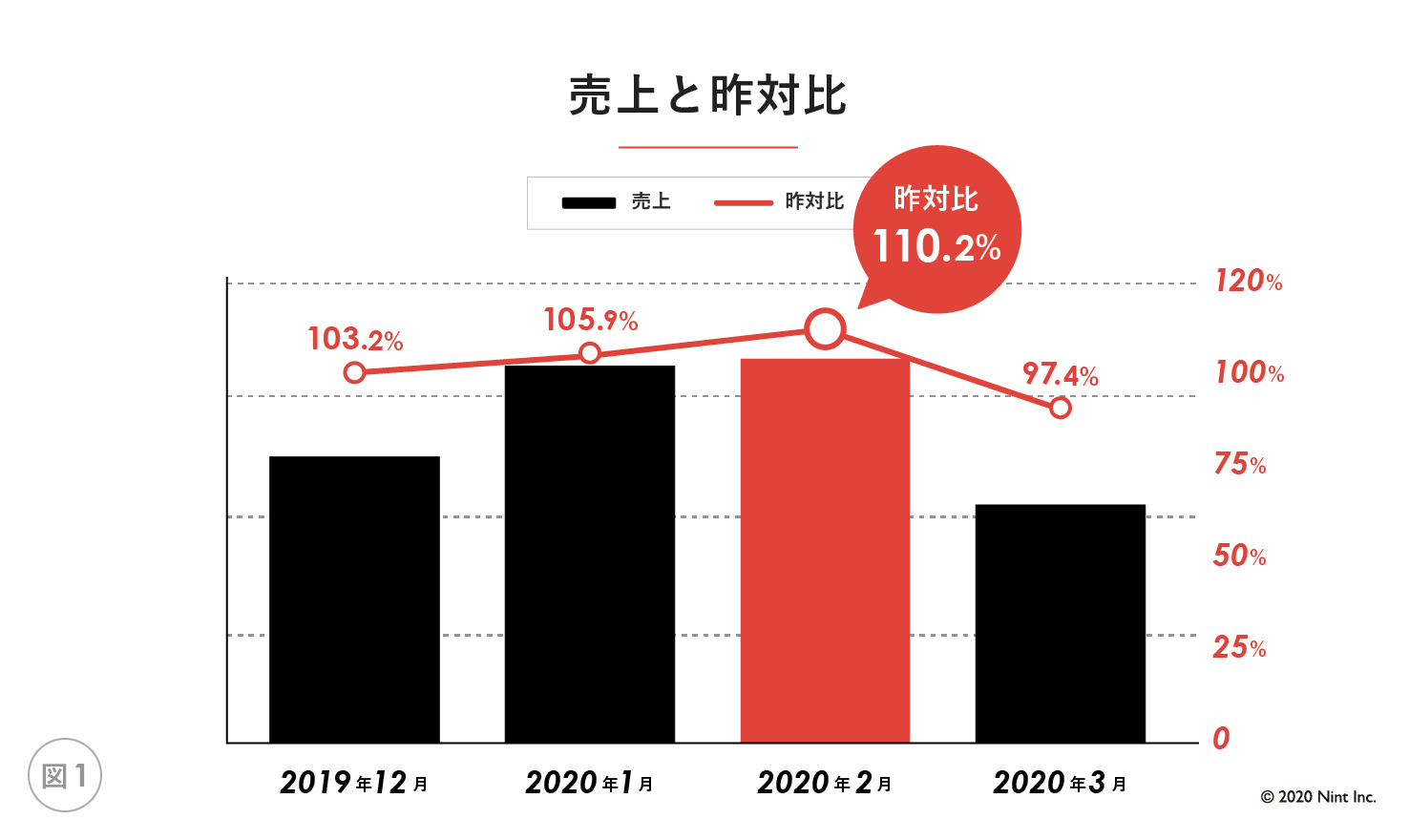 ECチャネルでも2020は昨年対比でピークの2月の売上は約110%に伸長してます。