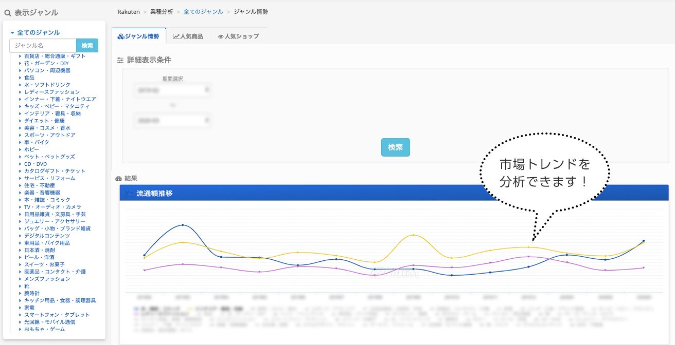 ※「業種分析」のジャンル規模で月別の動向を把握出来ます。