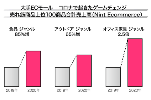 TOP お知らせ 【日本ネット経済新聞】「コロナで起きたゲームチェンジ」 2021.04.06 【日本ネット経済新聞】「コロナで起きたゲームチェンジ」 日本ネット経済新聞にてNintのデータより抽出した2020年にコロナ禍で突出した伸長となったジャンル・商品を取り上げて頂きました。 詳細はこちら