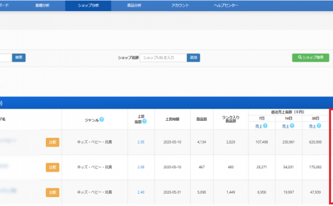 ショップ分析ショップを登録した日から30日以上経過すると、ショップの削除が可能になります。 いつショップを削除できるのかについては、下図の[追加時間]を確認ください。 [追加時間]から30日以上経過していれば、ショップの削除ができま...