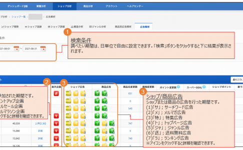 使い方ガイドショップ分析の広告施策状況で広告、商品名変更数、価格変更数、ポイント変更数、スーパーDEALなどイチページで確認できるところありますが、ご覧になったことはありますでしょうか? 例えば広告が少なくても価格変更履歴が多ければ...
