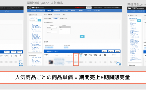 よくある質問各モール・機能によって、個数と価格の算出方法が異なるため、下記をご確認ください。 【業種分析】 <全モール共通> 価格=指定期間における売上指数÷販売量にて算出しています。 【商品分析】 <Rakuten・Yahoo> ...