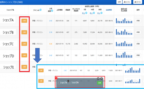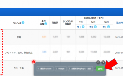 応用編こちらの記事では、複数の競合ショップの売上変化を同時に検知する方法をご紹介致します。 こちらの調査方法を習得することによって、競合の施策変化の早期発見や業務時短が期待できます。 ①ショップ分析 → ジャンル比較 ②ダッシ...