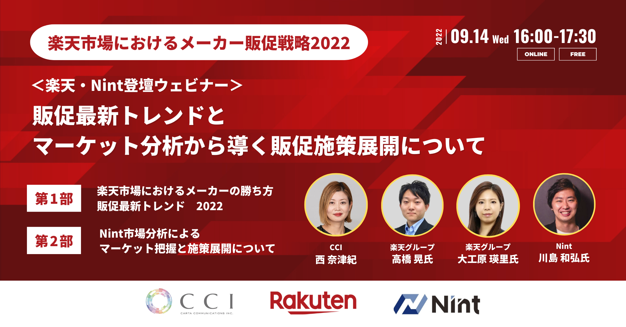 楽天市場におけるメーカー販促戦略2022 <楽天・Nint登壇ウェビナー> 販促最新トレンドと、マーケット分析から導く販促施策展開について
