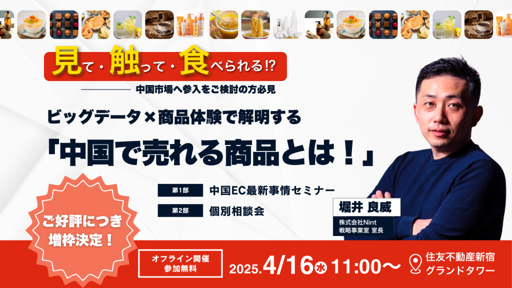 【オフラインセミナー】ご好評につき増枠!中国市場へ参入をご検討の方必見―ビッグデータ×商品体験で解明する「中国で売れる商品とは!」
