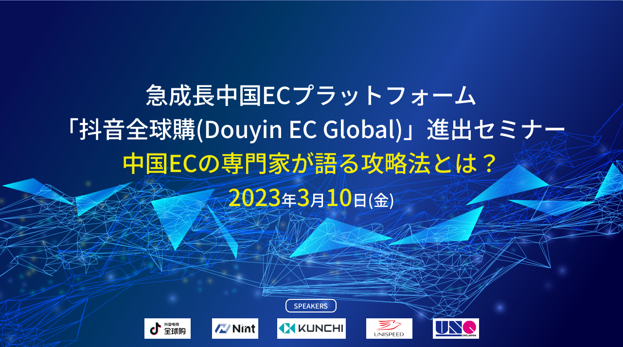 中国越境ECで躍進する日本企業は、Douyin ECを活用し始めていますが、まだ情報収集・投資検討フェーズの企業も多く、進出支援につながればと思い、プラットフォーム「Douyin EC」と中国ECの専門家「UNQ」「Kunchi」「ユニスピード」によるカンファレンスとなります。