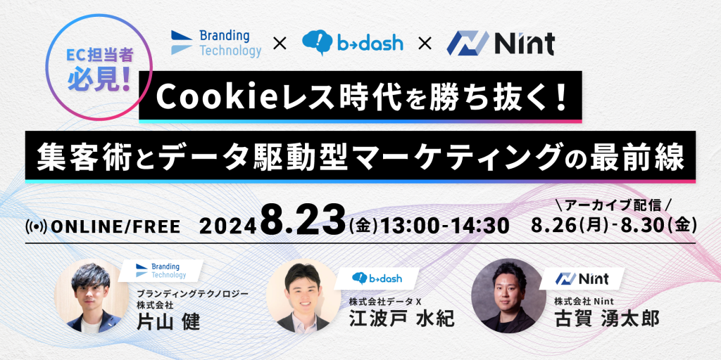 この度、2024年8月23日(金)にブランディングテクノロジー株式会社と株式会社データXとの共催セミナーを開催いたします。