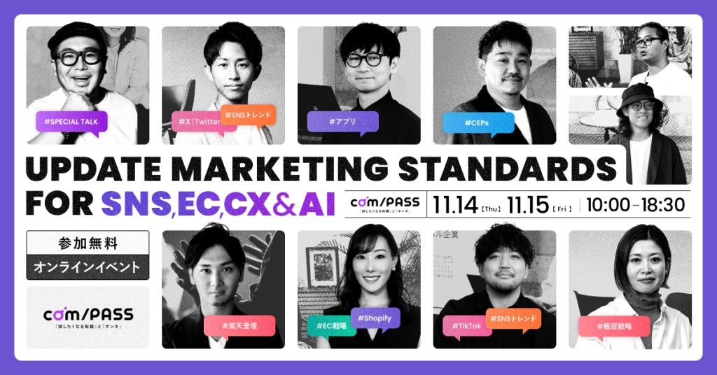 2024年11月14日(木)〜11月15日(金)に株式会社PLAN-Bが主催するオンラインイベント「com/PASS」に登壇いたします。Nintは11月15日(金)13時45分から、ケルヒャージャパン様との対談セミナーとしてEC市場のトレンドとこれからの販売戦略を徹底解説します。