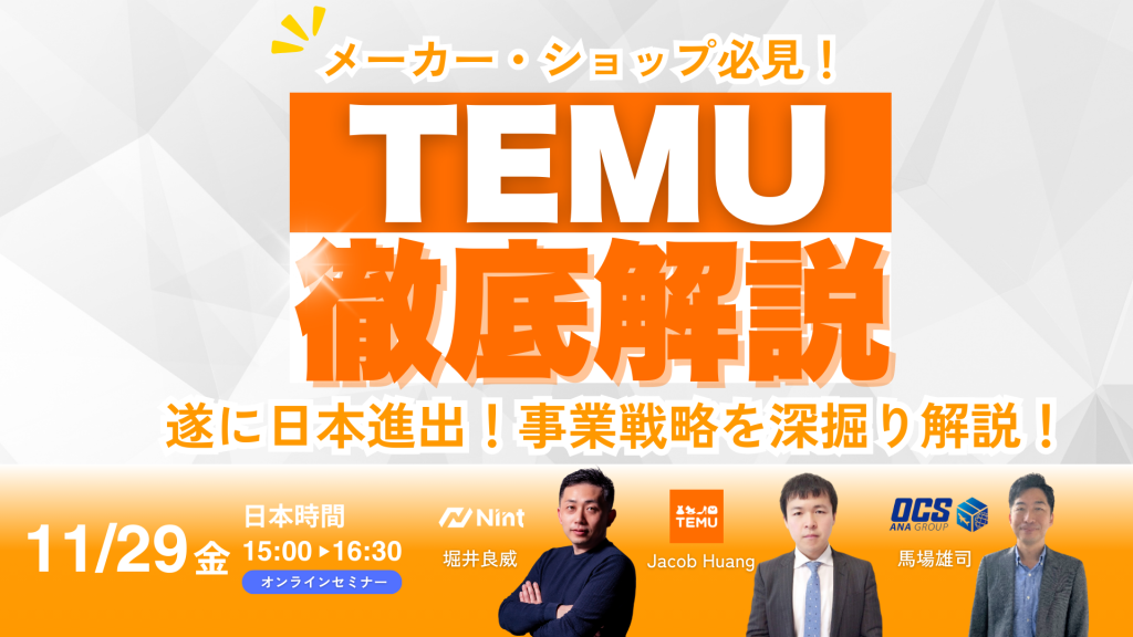 この度、2024年11月29日(金)にNint主催のセミナーを開催いたします。本セミナーでは、急成長中の「Temu」が日本市場向けに展開する戦略を徹底解説し、さらに越境EC物流の最新動向を北米・中国市場の事例とともに紹介します。