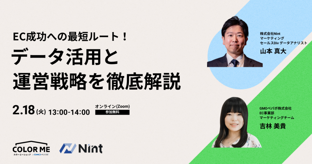 この度、2025年2月18日(火)に、GMOペパボ株式会社主催のセミナー「EC成功への最短ルート! データ活用と運営戦略を徹底解説」に登壇いたします。本セミナーには、Nintのデータアナリスト・山本真大が登壇し、3大ECモールの市場動向や販売戦略をデータに基づいて解説します。