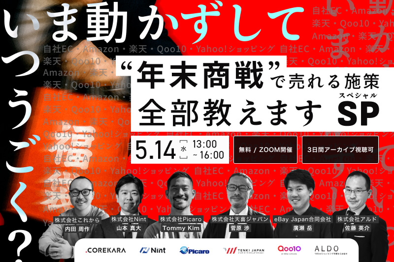 この度、2025年5月14日(水)に、無料オンラインセミナー「\年末商戦の勝敗は“今”決まる!?/主要モール&自社EC別 売れる施策ぜんぶ教えますSP~自社EC・Amazon・楽天・Qoo10・Yahoo!ショッピング~」が開催されます。