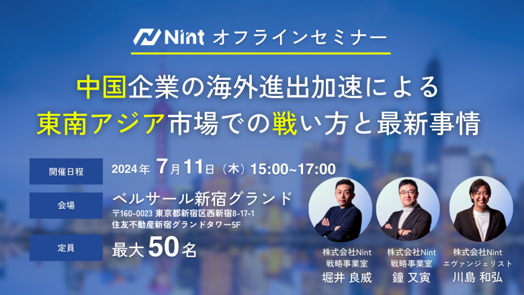 【セミナー開催】中国企業の海外進出加速による東南アジア市場での戦い方と最新事情