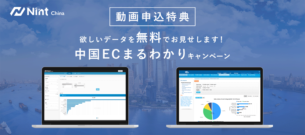 動画視聴申込、動画を閲覧いただいた方限定で、中国EC主要モールのデータをご覧いただけるキャンペーンを実施しています。まずは、動画視聴へお申込み下さい。詳細は動画閲覧ページで記載しております。お楽しみに!!