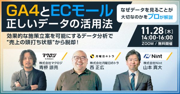 【セミナー】「GA4とECモール正しいデータの活用法~効果的な施策立案を可能にするデータ分析で”売上の頭打ち状態”から脱却!~」を開催します