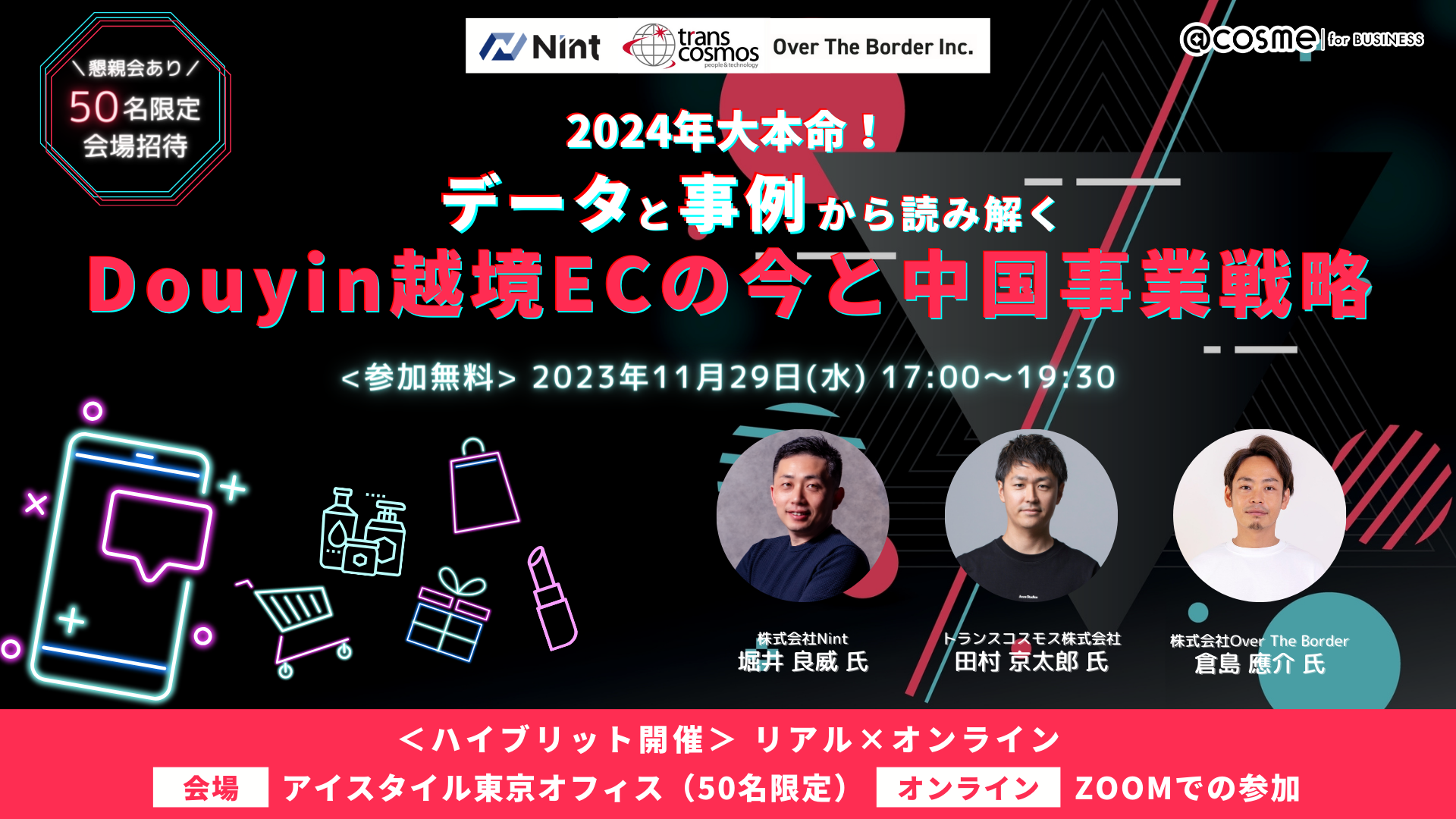 この度、株式会社Nint 経営戦略担当 堀井良威が11/29(水)17:00~開催のセミナー「W11の振り返りや2024年に向けての中国越境ECの戦略を考える」にゲストスピーカーとして登壇することになりました。