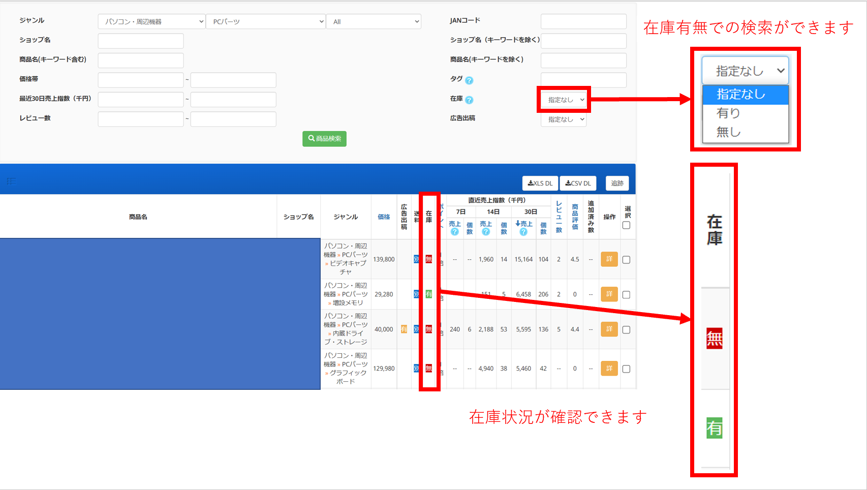 Enterprise版ならびにProfessional版【商品分析】への「在庫状況可視化機能」により、競合ショップの在庫切れ商品の可視化が可能になることで、売上向上対策などが迅速かつ論理的に実施可能になりました。