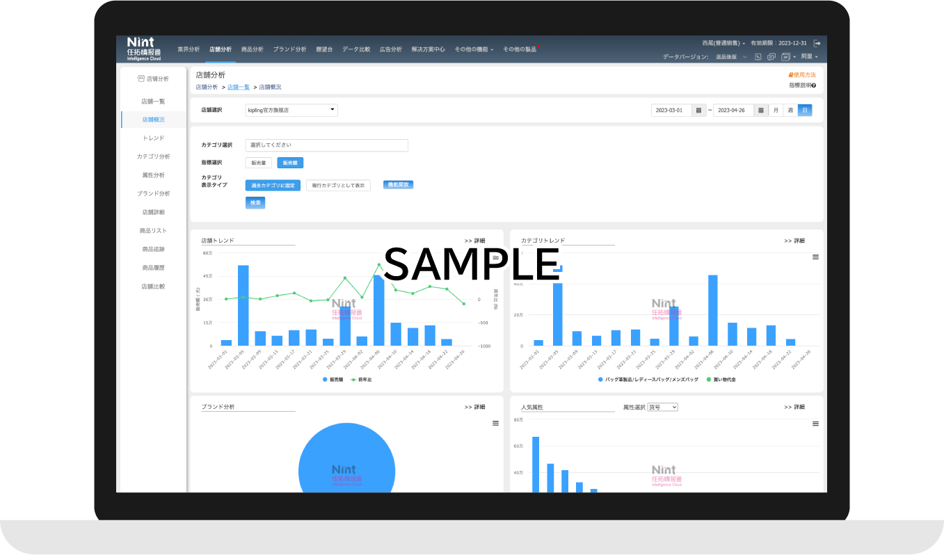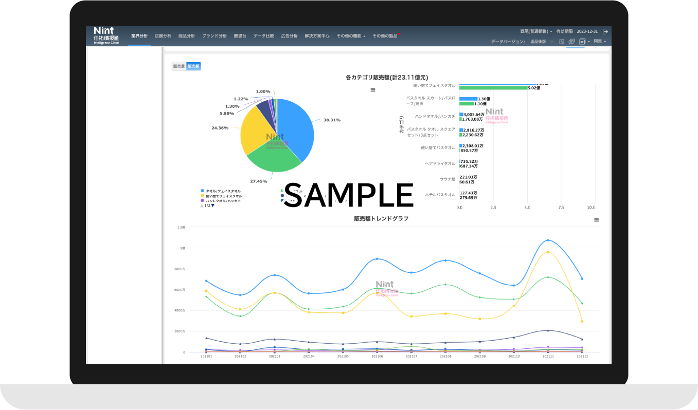 株式会社Nintのグループ会社である中国法人、任拓数据科技(上海)有限公司が2009年より提供する中国ECデータ分析サービスです。中国主要ECモール「天猫(Tmall)」「淘宝(taobao)」「京東(JD)」「抖音(Douyin)」のジャンル・カテゴリー、ブランド、ショップ、商品単位の売上トレンド、広告がタイムリーにトラッキング・分析できるクラウドサービスとして、これまで中国で累計4000社以上に導入実績があり、特にフォーチュン・グローバル500にランクインする消費財メ―カーでは、80%以上に採用されています。